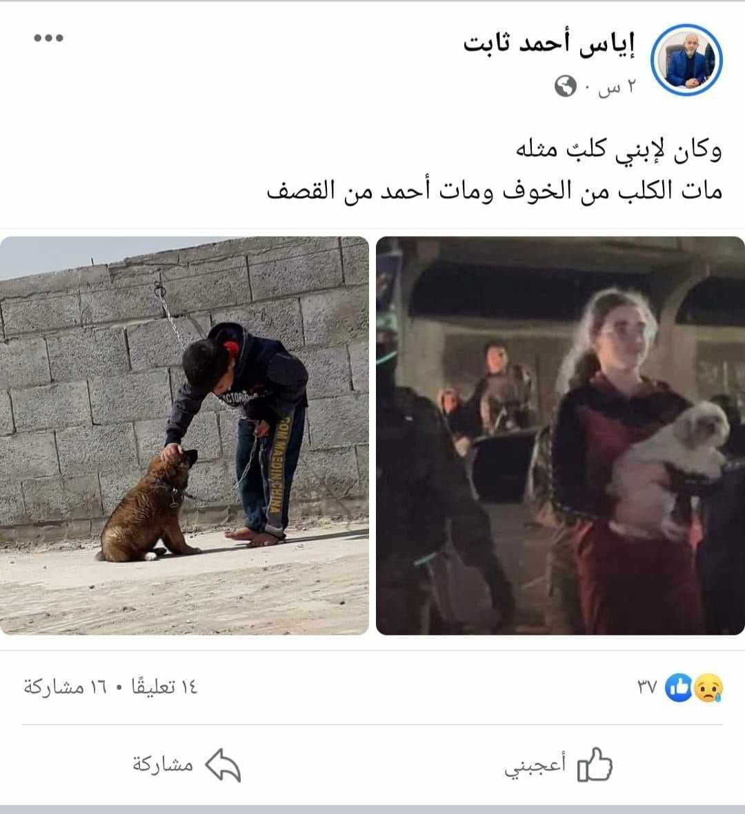 PALESTINIAN WOMAN: “My son had a dog like him, but the dog died of fear and Ahmed died because of the bombing.”