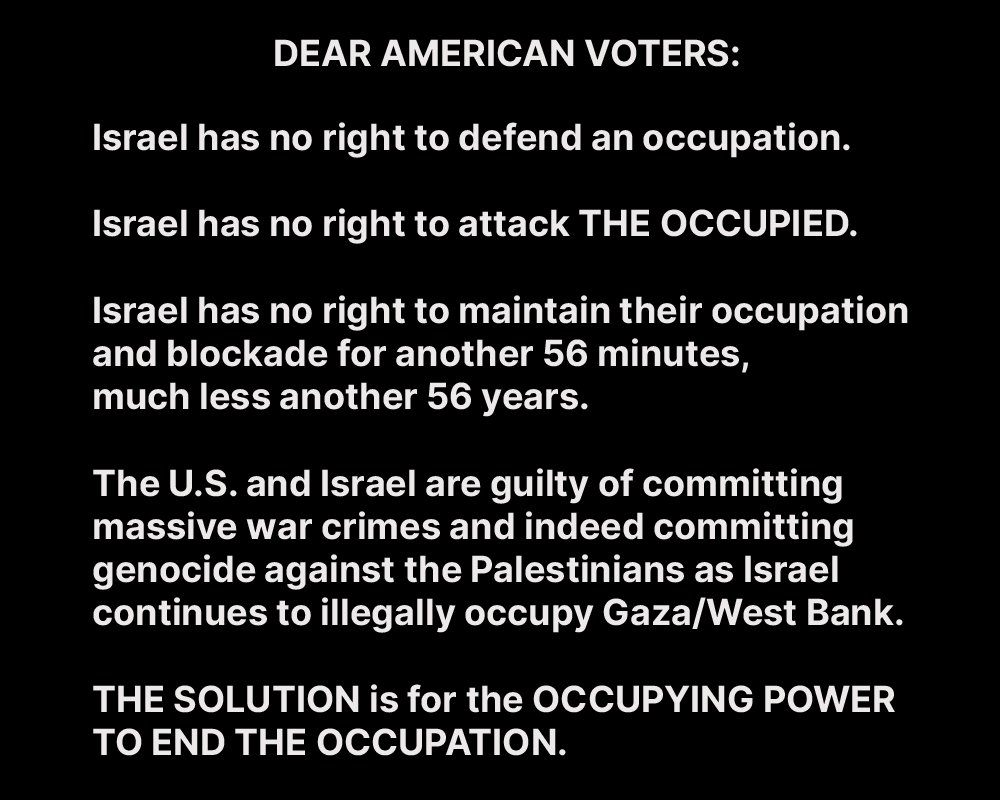 DEAR AMERICAN VOTERS: THE SOLUTION is for the OCCUPYING POWER TO END THE OCCUPATION.