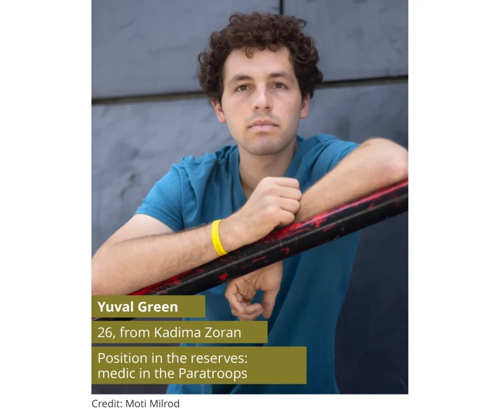 Yuval Green, a 26-year-old student and a reserve paratrooper, stresses that even before October 7 he was long undecided about continuing doing reserve duty, given his opposition to the occupation and to Israel’s policy in the West Bank. “The guys I serve with in the reserves were with me during compulsory service too, so we have a very significant relationship,” he says.