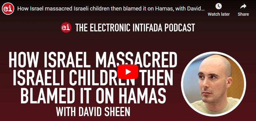 - “Israeli forces shot their own civilians, kibbutz survivor says,” Ali Abunimah and David Sheen