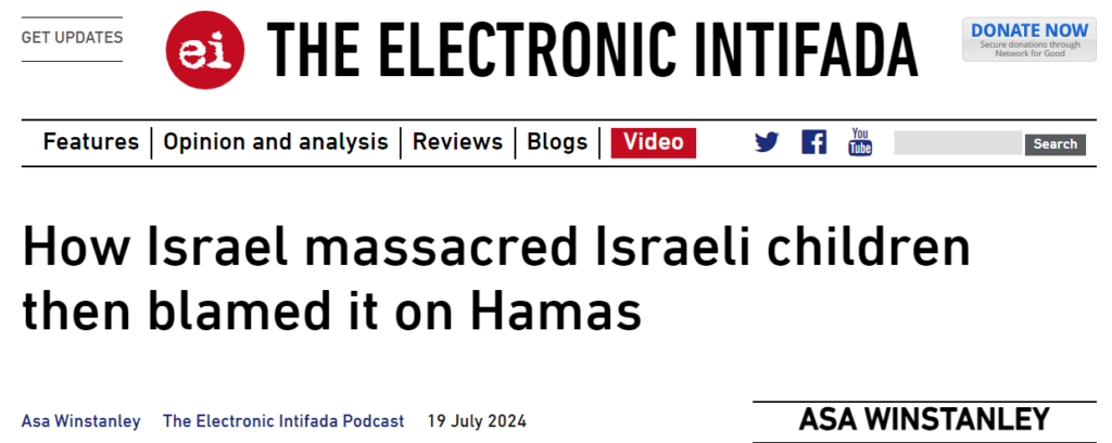 https://platform.twitter.com/embed/Tweet.html?dnt=false&embedId=twitter-widget-0&features=eyJ0ZndfdGltZWxpbmVfbGlzdCI6eyJidWNrZXQiOltdLCJ2ZXJzaW9uIjpudWxsfSwidGZ3X2ZvbGxvd2VyX2NvdW50X3N1bnNldCI6eyJidWNrZXQiOnRydWUsInZlcnNpb24iOm51bGx9LCJ0ZndfdHdlZXRfZWRpdF9iYWNrZW5kIjp7ImJ1Y2tldCI6Im9uIiwidmVyc2lvbiI6bnVsbH0sInRmd19yZWZzcmNfc2Vzc2lvbiI6eyJidWNrZXQiOiJvbiIsInZlcnNpb24iOm51bGx9LCJ0ZndfZm9zbnJfc29mdF9pbnRlcnZlbnRpb25zX2VuYWJsZWQiOnsiYnVja2V0Ijoib24iLCJ2ZXJzaW9uIjpudWxsfSwidGZ3X21peGVkX21lZGlhXzE1ODk3Ijp7ImJ1Y2tldCI6InRyZWF0bWVudCIsInZlcnNpb24iOm51bGx9LCJ0ZndfZXhwZXJpbWVudHNfY29va2llX2V4cGlyYXRpb24iOnsiYnVja2V0IjoxMjA5NjAwLCJ2ZXJzaW9uIjpudWxsfSwidGZ3X3Nob3dfYmlyZHdhdGNoX3Bpdm90c19lbmFibGVkIjp7ImJ1Y2tldCI6Im9uIiwidmVyc2lvbiI6bnVsbH0sInRmd19kdXBsaWNhdGVfc2NyaWJlc190b19zZXR0aW5ncyI6eyJidWNrZXQiOiJvbiIsInZlcnNpb24iOm51bGx9LCJ0ZndfdXNlX3Byb2ZpbGVfaW1hZ2Vfc2hhcGVfZW5hYmxlZCI6eyJidWNrZXQiOiJvbiIsInZlcnNpb24iOm51bGx9LCJ0ZndfdmlkZW9faGxzX2R5bmFtaWNfbWFuaWZlc3RzXzE1MDgyIjp7ImJ1Y2tldCI6InRydWVfYml0cmF0ZSIsInZlcnNpb24iOm51bGx9LCJ0ZndfbGVnYWN5X3RpbWVsaW5lX3N1bnNldCI6eyJidWNrZXQiOnRydWUsInZlcnNpb24iOm51bGx9LCJ0ZndfdHdlZXRfZWRpdF9mcm9udGVuZCI6eyJidWNrZXQiOiJvbiIsInZlcnNpb24iOm51bGx9fQ%3D%3D&frame=false&hideCard=false&hideThread=false&id=1728031404708032701&lang=en&origin=https%3A%2F%2Felectronicintifada.net%2Fblogs%2Fasa-winstanley%2Fhow-israel-massacred-israeli-children-then-blamed-it-hamas&sessionId=c32a5491978381cef15288eb8c8a7ac5ecbdf9fd&siteScreenName=intifada&siteUserId=6721522&theme=light&widgetsVersion=2615f7e52b7e0%3A1702314776716&width=550pxThis one is not explicit, but they’re implicitly saying – [actually] they do say “#HamasMassacre” [at the end].